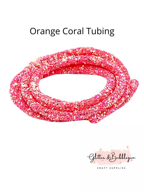 Fun chunky glitter tubing that is coral with orange undertones. This is great for all kinds of crafts. Diameter is 6mm and length is 1 yard.