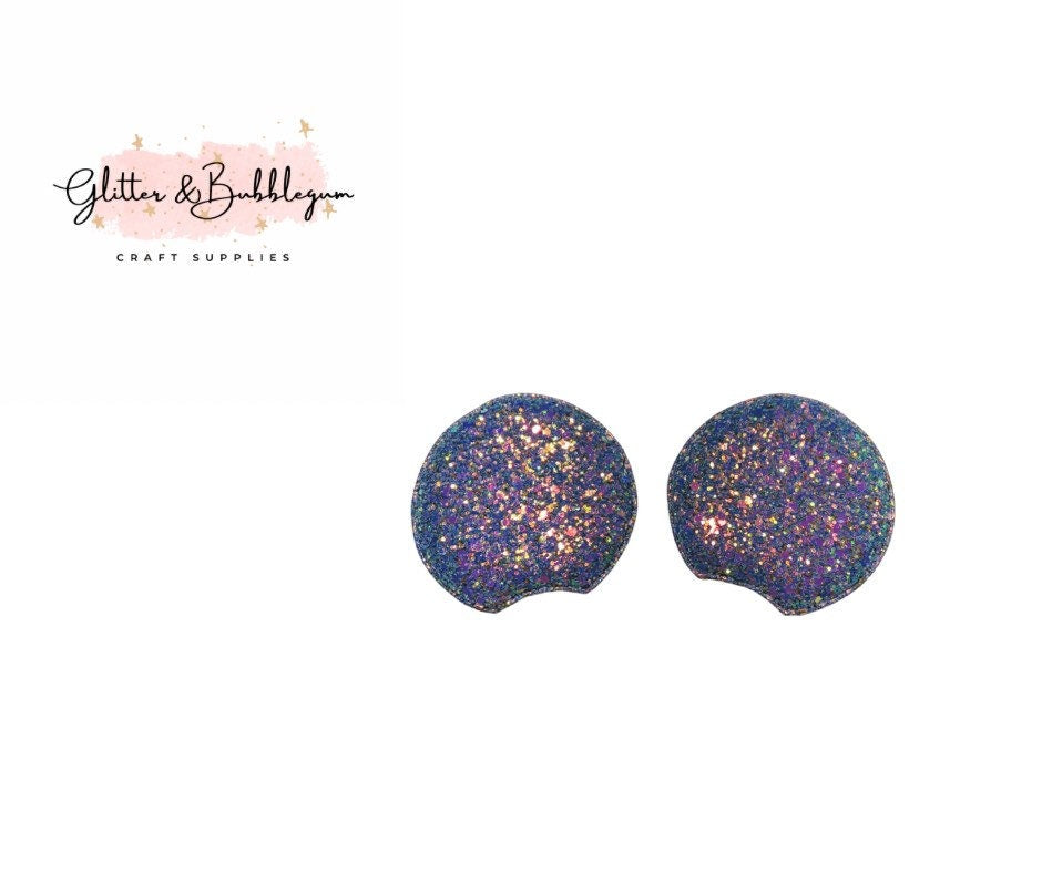 Fun light chunky glitter purple mouse ears to add to headbands or barrettes. 2 3/4 inch diameter. 1 pair = 2 ears, 5 pairs = 10 ears.