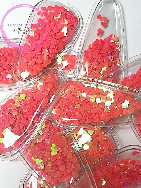 Shaker snap clip covers. DOES NOT INCLUDE SNAP CLIPS. 10 pack includes: 10 fuchsia heart confetti shakers snap clip covers.