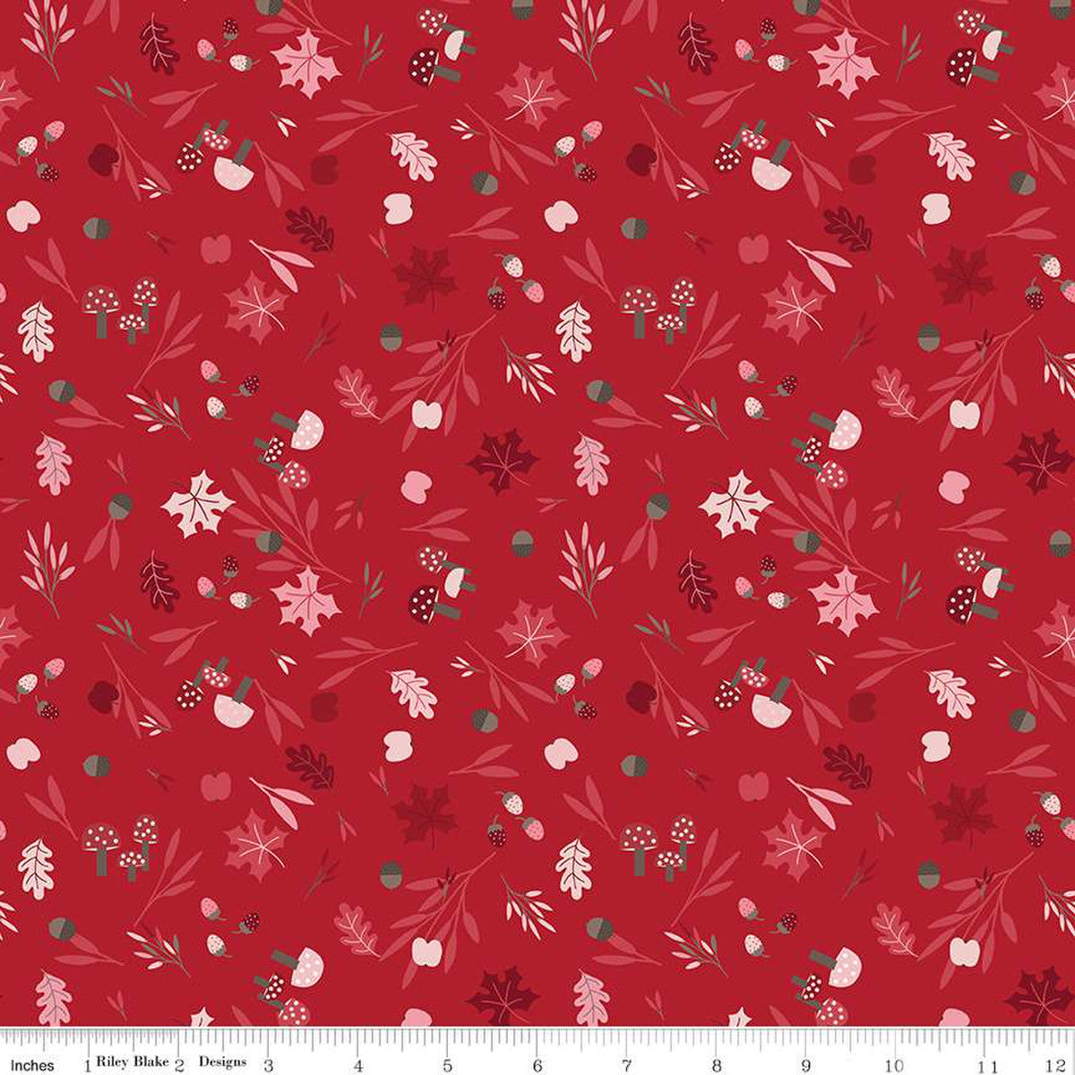 Item Description: To Grandmother's House by Jennifer Long of Bee Sew Inspired for Riley Blake Designs is great for quilting, apparel and home decor. This print features tossed forest elements, such as leaves, apples, acorns, mushrooms, and more.