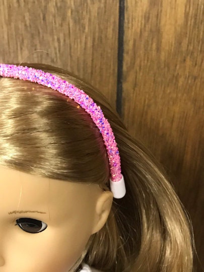 Check out this 5 pack of wire headbands for the 18 inch dolls such as American Girl. These can be used with chunky glitter tubing : https://www.etsy.com/listing/1002168066/chunky-glitter-tubing-6mm-x-1-yard-pink to make adorable doll headbands.